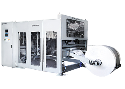 通過伺服電機(jī)送膜至指定袋長,切刀對(duì)底封后的袋子從膜卷上切斷,完成制袋。